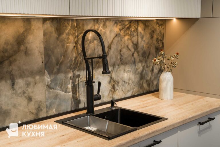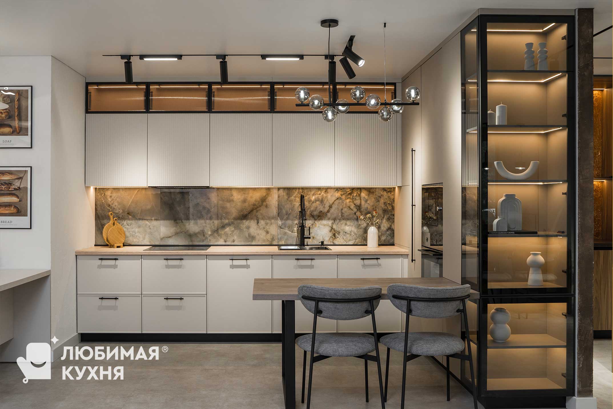 Кухня бестселлер! В ней идеально все — бежево-серые фасады, черная алюминиевая рамка со стеклом, рифленые фасады — кухня мечта! Удачная компоновка обеспечивает легкий доступ ко всему необходимому, благодаря чему готовка превращается в одно удовольствие. Сдержанная палитра цветов и матовые фасады обеспечит легкость в уборке и сдержанность, алюминиевые рамки создадут акцент и придадут легкость конструкции!